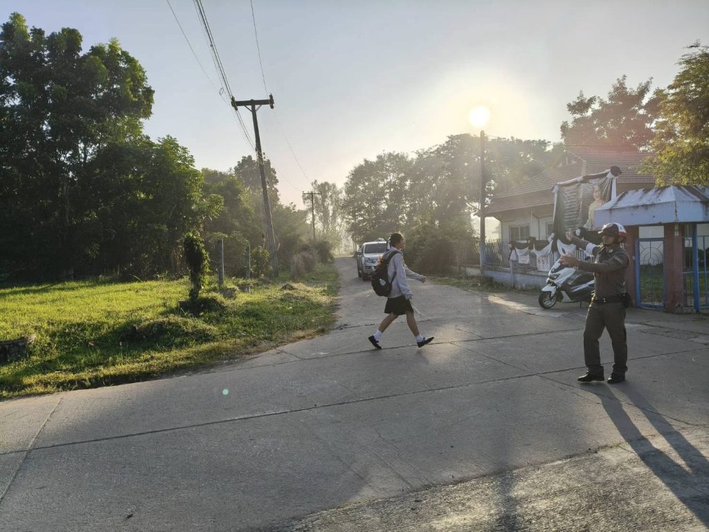 จราจรสามง่ามฯ ปฎิบัติหน้าที่ดูแลความสะดวกด้านการจราจร หน้าโรงเรียนสามง่ามชนูปถัมภ์