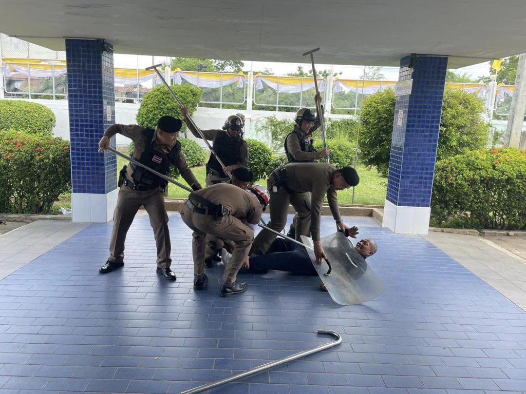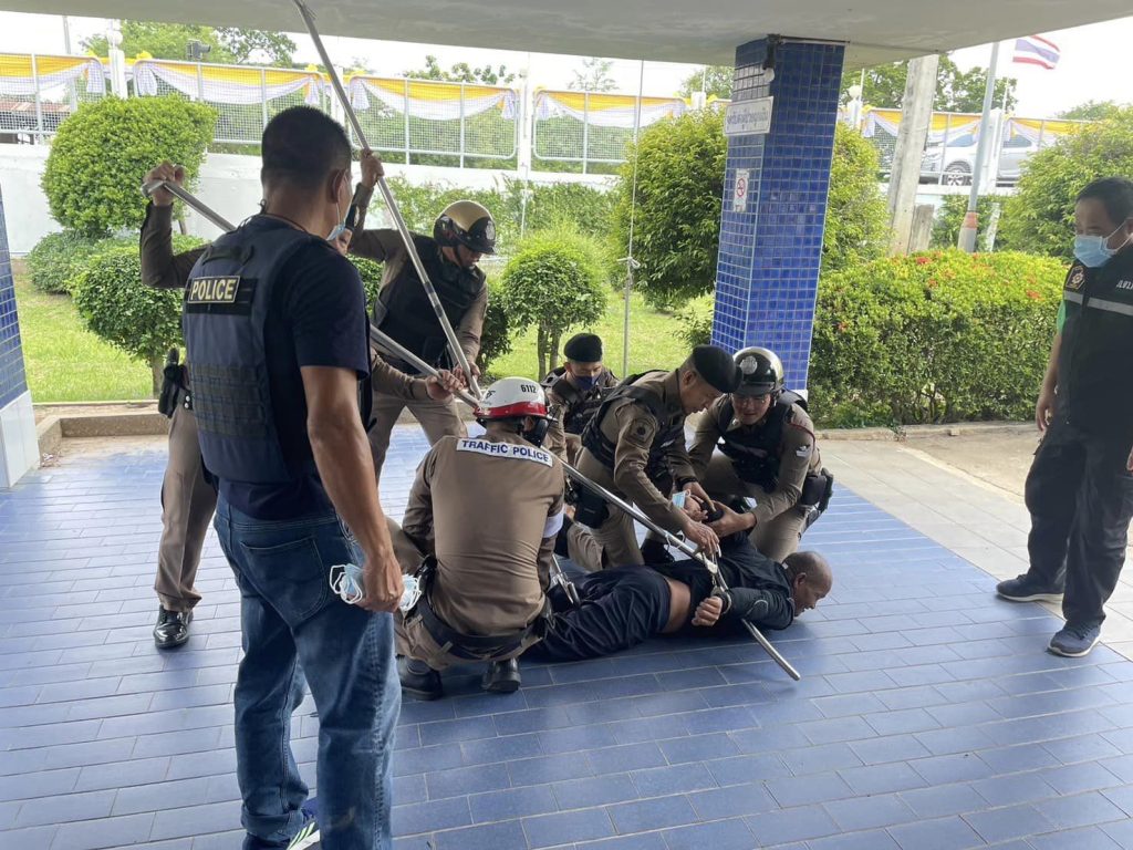 ซ้อมแผนบุคคุลคลุ้มคลั่งที่บริเวณหน้าโรงพยาบาล