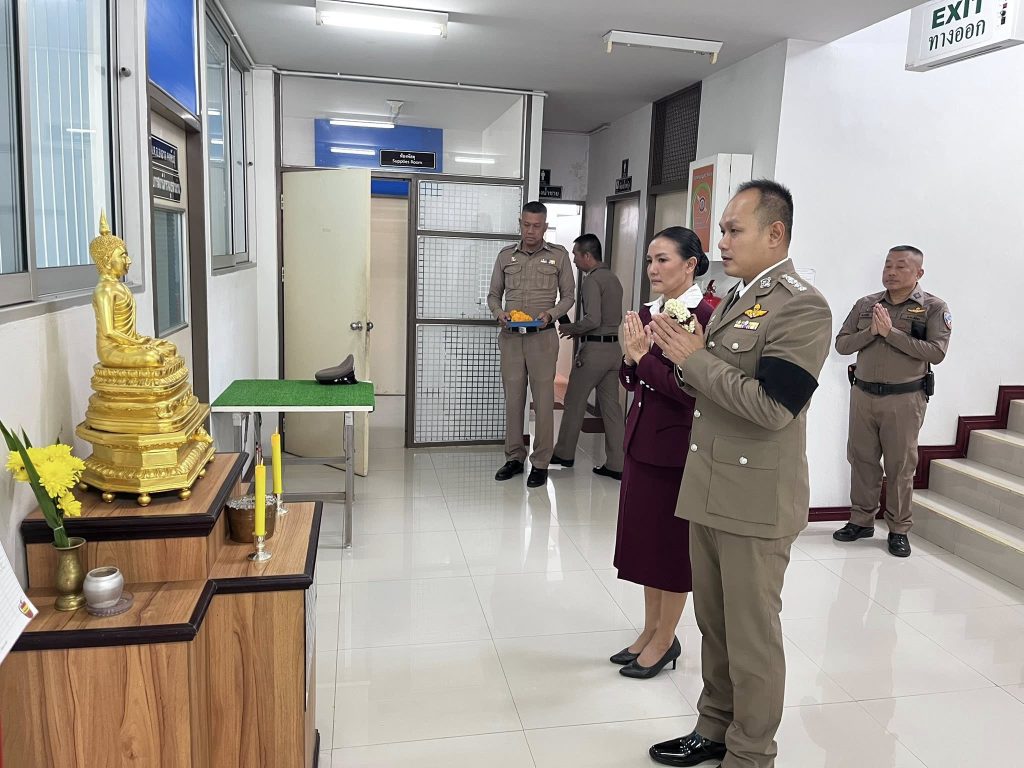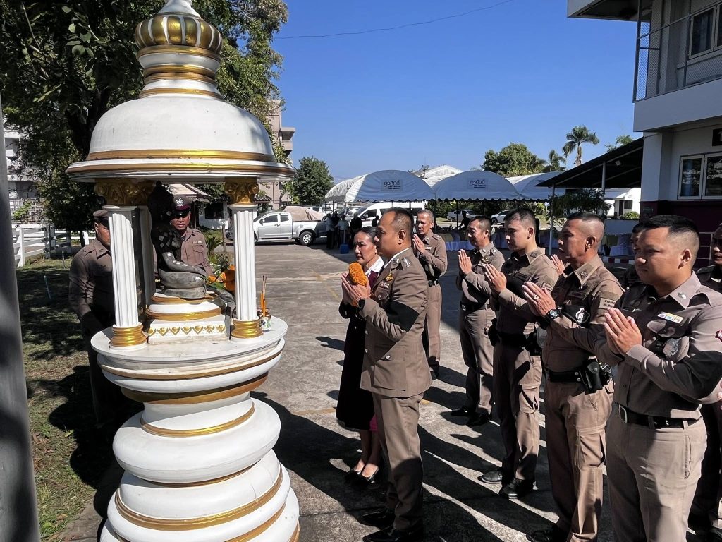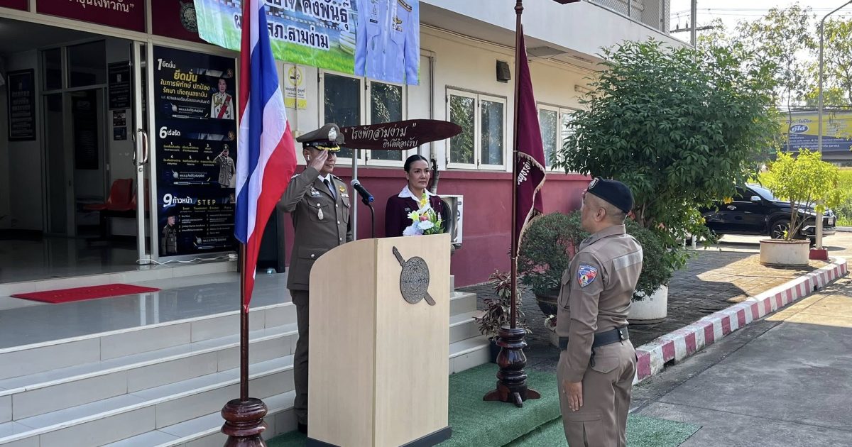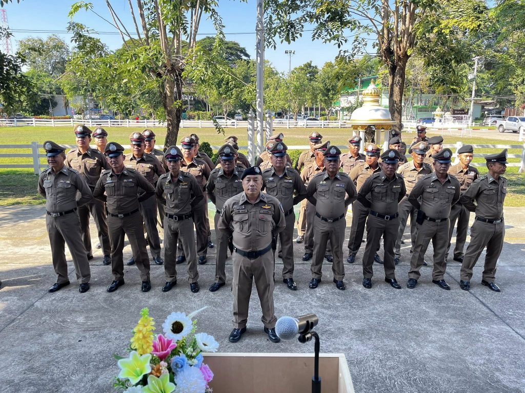 ตร.สภ.สามง่ามได้ตั้งแถวต้อนรับ พ.ต.อ.องอาจ คงพันธุ์ เข้ารับตำแหน่งผกก.สภ.สามง่าม