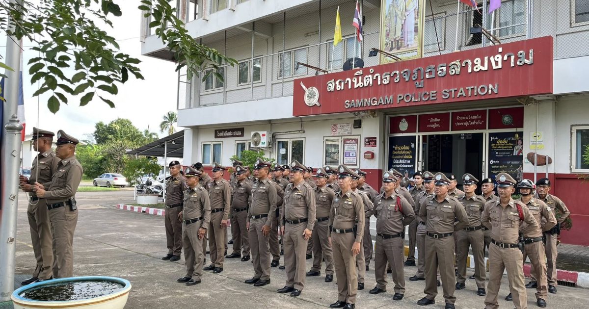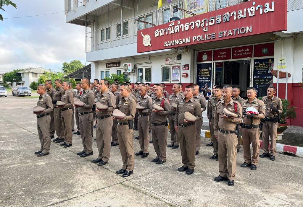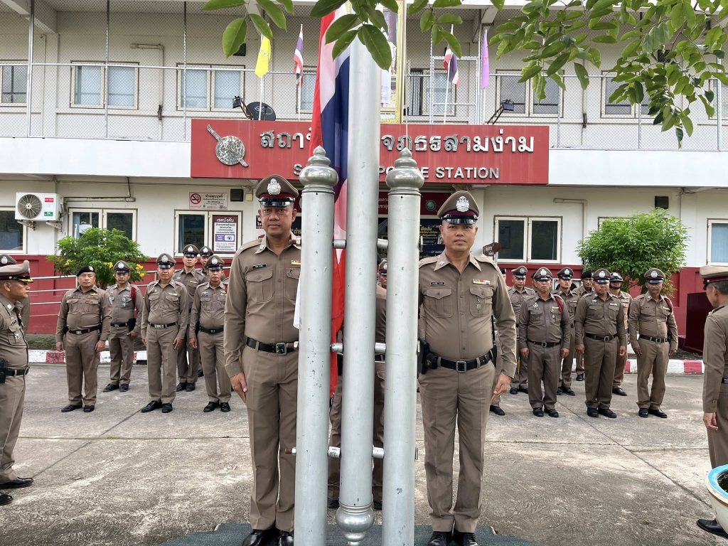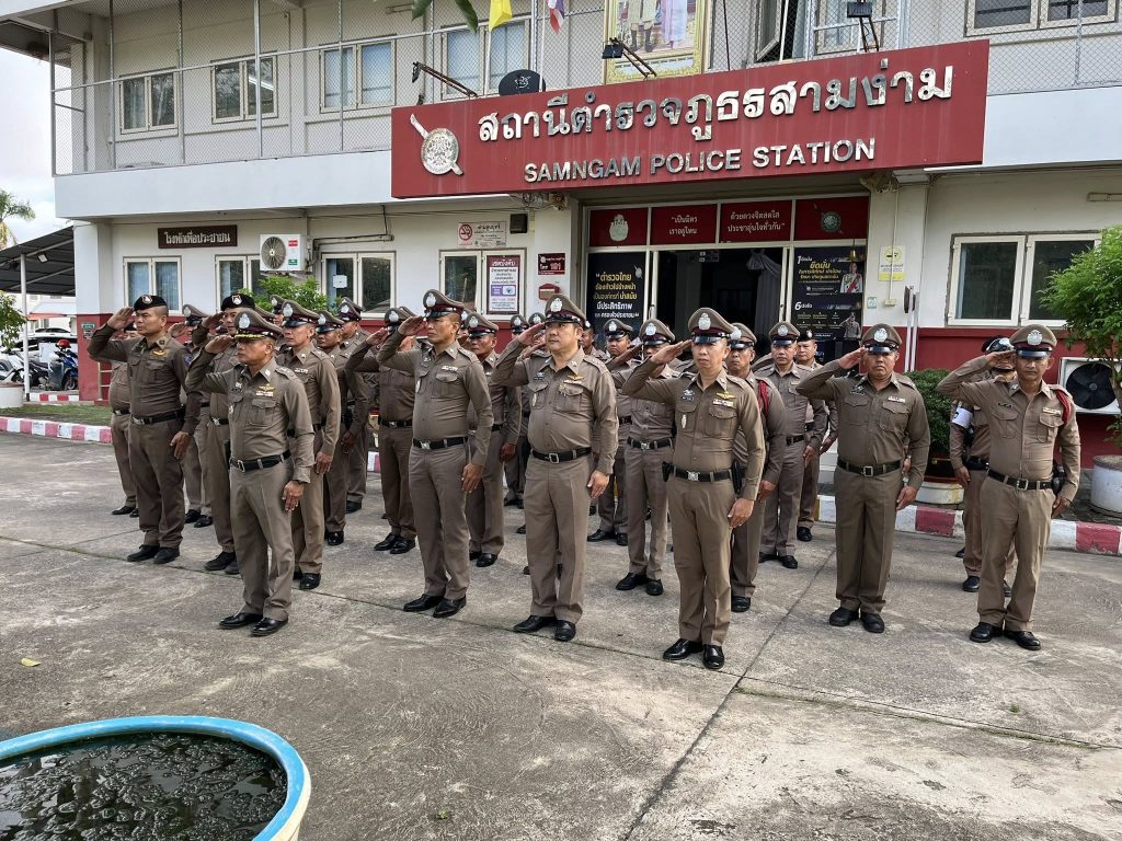 ตำรวจสภ.สามง่าม ร่วมเคารพธงชาติ ยืนสงบนิ่งถวายความอาลัยแด่สมเด็จพระนางเจ้าสิริกิติ์พระบรมราชินีนาถ พระบรมราชชนนีพันปีหลวง