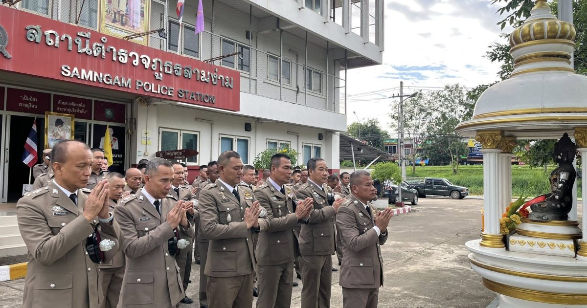 ตำรวจสภ.สามง่าม ไหว้สิ่งศักดิ์สิทธิ์ ประจำสถานีฯ และร่วมพิธีเจริญพระพุทธมนต์