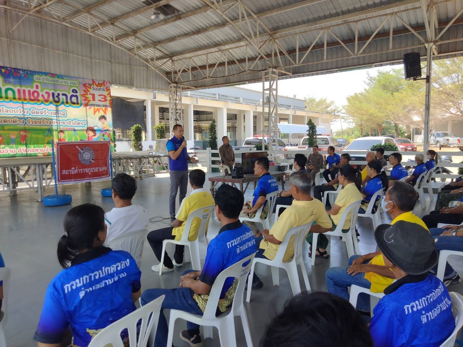 นำโดย พ.ต.อ.นรินทร์ เกษกาญจนานุช ผกก.สภ.สามง่าม และข้าราชการตำรวจ สภ.สามง่าม , ปลัดอำเภอสามง่าม , พร้อมด้วย นาย อำนาจ เขียวพุ่มพวง กำนันตำบลสาม่าม ( กต.ตร.สามง่าม ) ได้ร่วมกันบรรยายให้ความรู้และหลักแนวทางปฏิบัติให้แก่ ฝ่ายปกครอง กำนัน ผู้ใหญ่บ้านผู้นำชุมชน และชาวบ้าน ในเขตพื้นที่ ตำบลสามง่าม เพื่อให้ทราบถึงวิธีการเอาชีวิตรอด เมื่อเกิดเหตุกราดยิง หรือ คนคลุ้มคลั่ง โดยวิธี หนี ซ่อน สู้ หรือ(Active Shooter) เพื่อความปลอดภัยต่อชีวิต ลดความสูญเสีย เมื่อพบความเสี่ยง ที่จะเกิดเหตุเหตุการณ์ดังกล่าว ทั้งเจ้าหน้าที่ตำรวจยังได้สาธิตการใช้อุปกรณ์ควบคุม บุคคลคุ้มคลั่ง(ไม้ง่าม) ให้แก่ผู้นำ และชาวบ้านที่ร่วมรับฟัง และเพื่อการจับและควบคุมบุคคลได้อย่างปลอดภัย ณ ศาลาอเนกประสงค์เทศบาล ต.สามง่าม อ.สามง่าม จว.พิจิตร