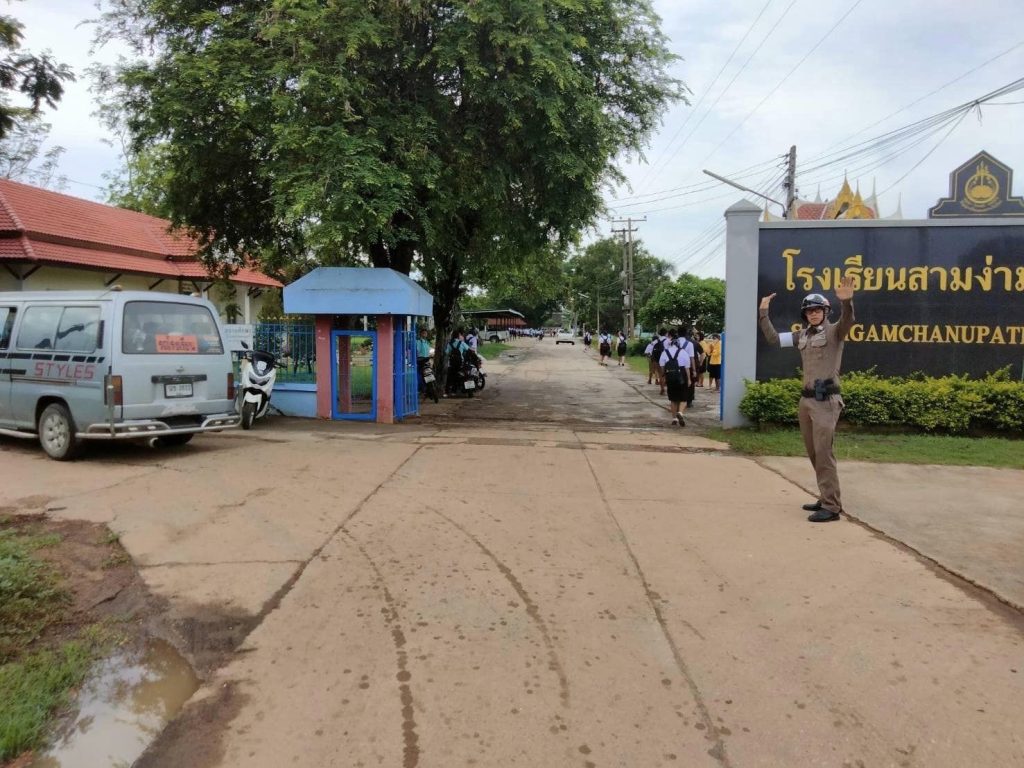 วันที่ 27 พฤษภาคม 2567 ได้อำนวยความสะดวกการจราจรให้กับนักเรียนสามง่ามชนูปถัมภ์