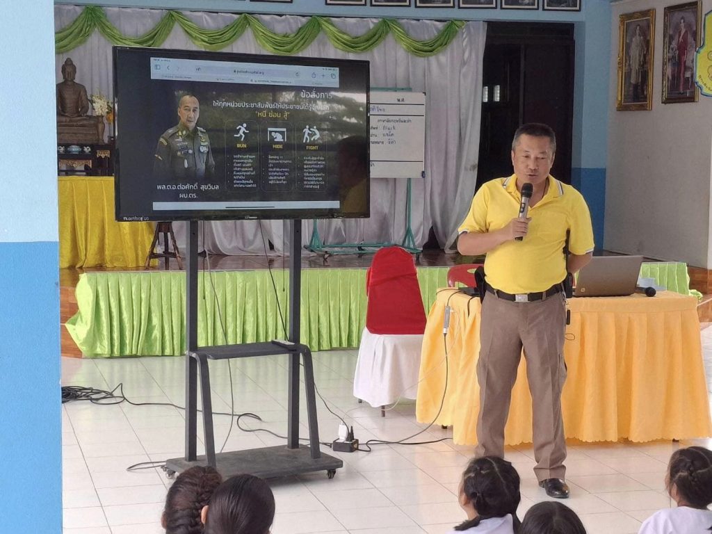 สภ.สามง่ามให้ความรู้โรงเรียนรังนก วิธีการเอาชีวิตรอด เมื่อเกิดเหตุคนคลุ้มคลั่ง (Active Shooter)