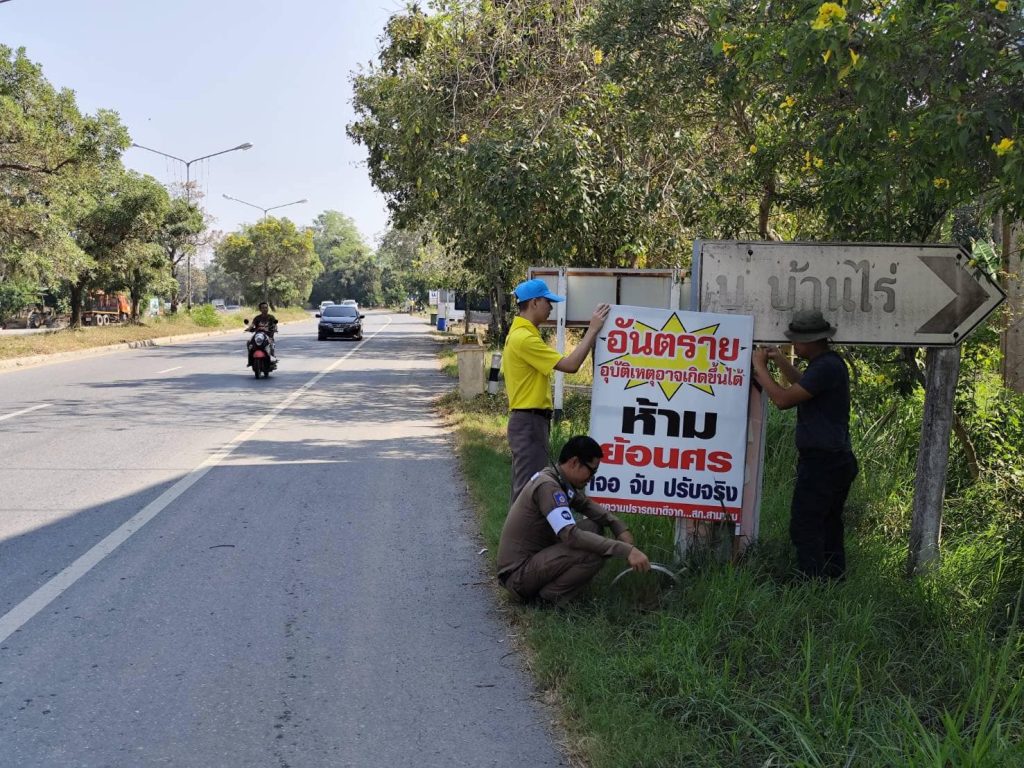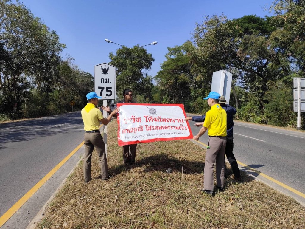สภ.สามง่าม ร่วมกันติดตั้งป้ายแสดงจุดเสี่ยงและจุดทางแยก ช่วงเทศกาลปีใหม่ 2568