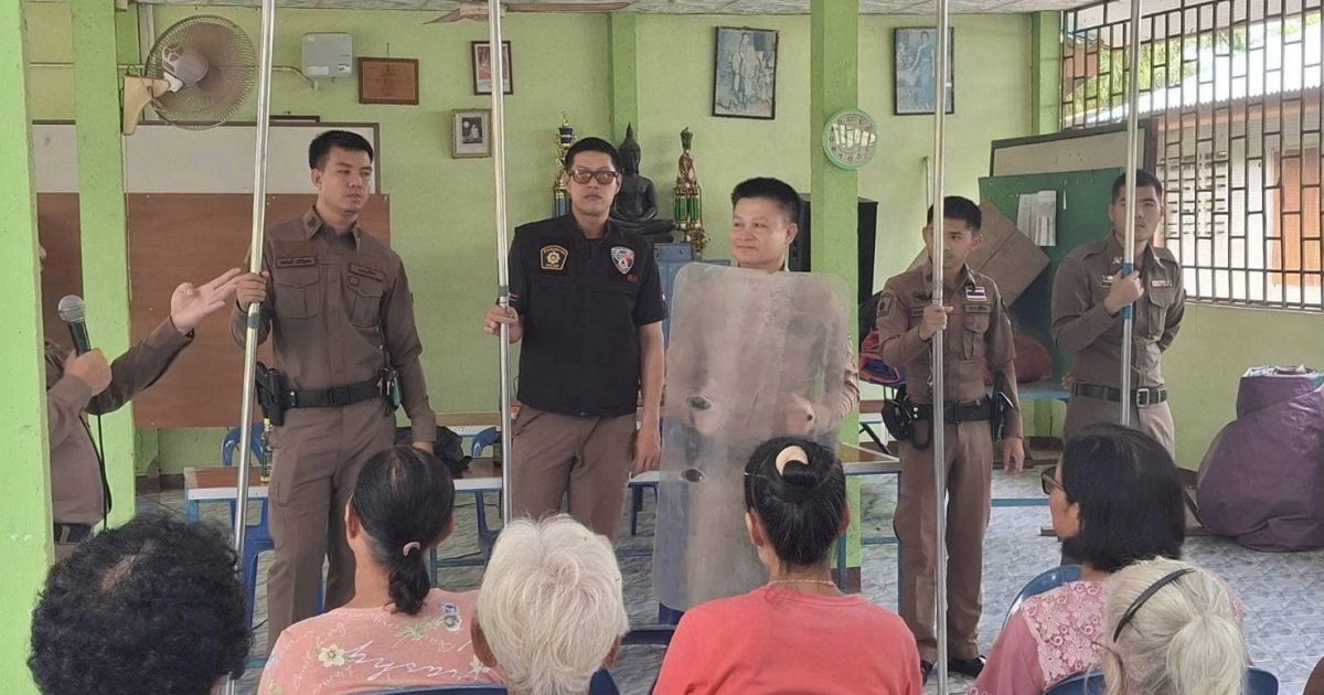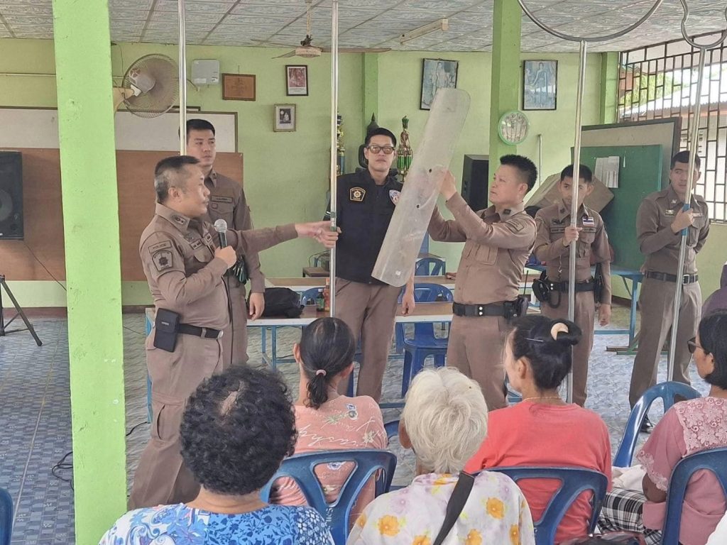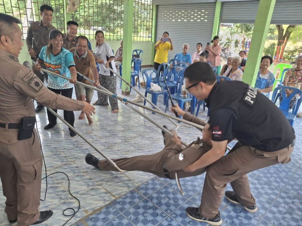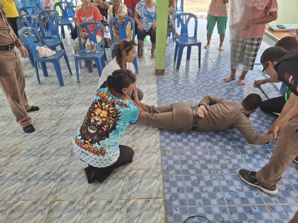 สภ.สามง่าม ให้ความรู้ พร้อมทั้งฝึกการใช้ไม้ง่ามในการควบคุมบุคคลคุ้มคลั่ง บ้านหาดกรวด หมู่ที่ 1 ตำบลสามง่าม อำเภอสามง่ามฯ
