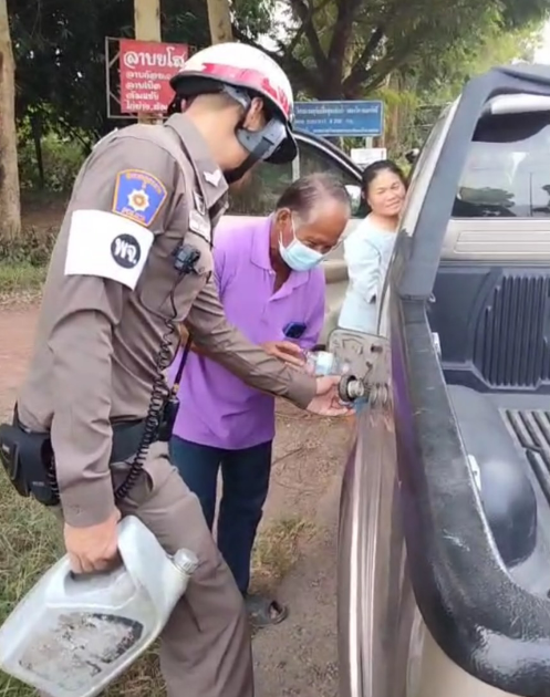 ให้การช่วยเหลือประชาชน ตามหลัก 5s โดยนำนํ้ามันเชื้อเพลิงมาเติมให้กับรถยนต์ เมื่อเติมน้ำมันแล้วสามารถสตาร์ทเครื่องติด และเดินทางต่อไปได้