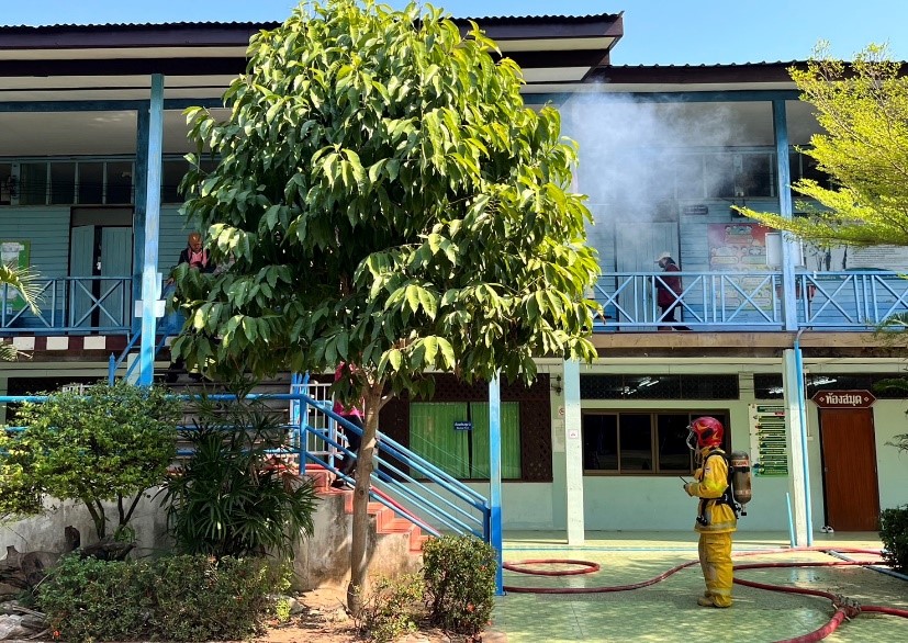 ให้ความรู้และซ้อมแผน จำลองเหตุเพลิงไหม้ ให้กับ บุคลากร ฯ
